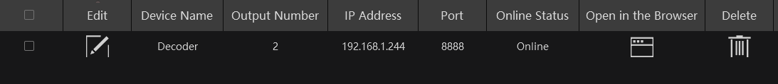 Home --> Resource Managment --> Add, Edit or Delete Device --> Decoder --> Add