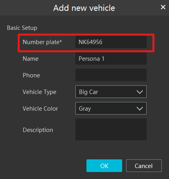 Home --> Group Management --> People and Vehicle Management --> Vehicle Registration --> Elegir la lista de vehiculos (Allow List / Block List) --> Add