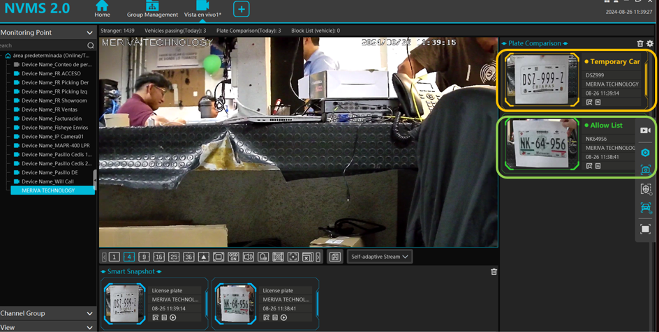 El software NVMS 2.0 soporta agregar cámaras ANPR, es decir, cámaras que cuentan con detección y reconocimiento de placas como lo son: