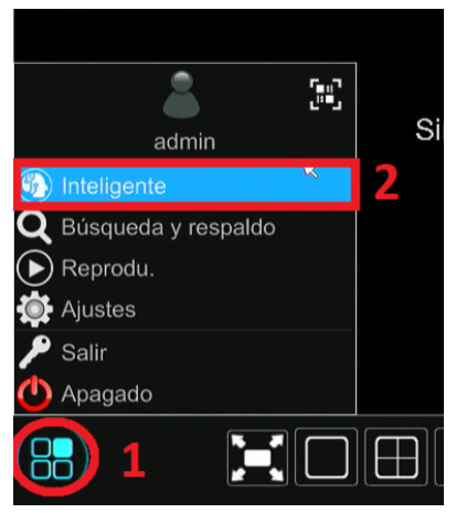 En el grabador ingresamos en el icono de la parte inferior (1) y Seleccionamos el apartado Inteligente (2).