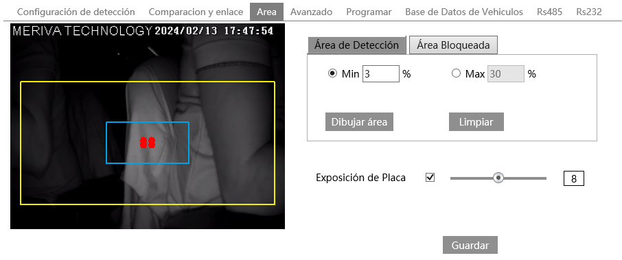 Configuración --> Evento -->Detección de placa de vehículo --> Área