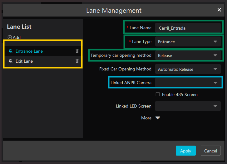 ◄ Linked ANPR Camera, aquí al seleccionarla, nos permitira elegir la camara a vincular.