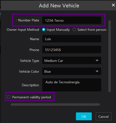 Nos mostrara la ventana para agregar vehiculos, asi como los datos del mismo.