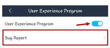 Debemos tener habilitada la opción de User Experience Program ( Programa de experiencia del usuario) y seleccionaremos "Bug Report / Informe de errores".