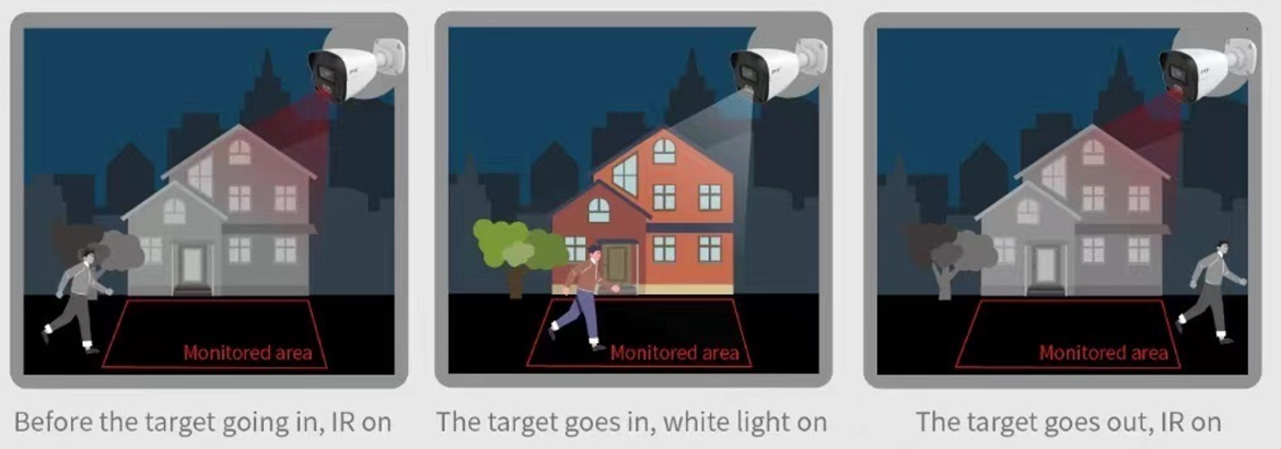 “Luz cálida ON al aparecer objetivo de interés, IR ON cuando no aparece ningún ser objetivo de interés.