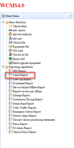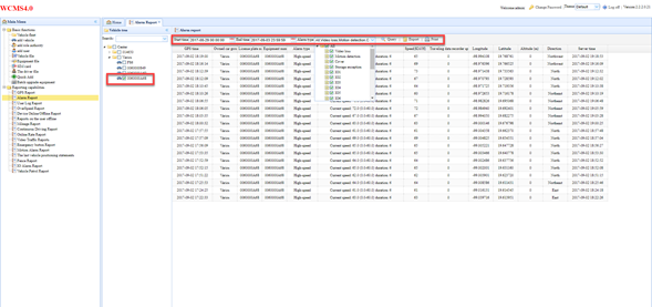 Posteriormente seleccionamos el vehículo del cual deseamos obtener los reportes así mismo el día y hora de inicio y día y hora de finalización, en la pestaña de “Alarm type” podemos seleccionar una alarma en específico o bien todos los tipos d alarma generada. Damos clic en “Query” para obtener el reporte.
