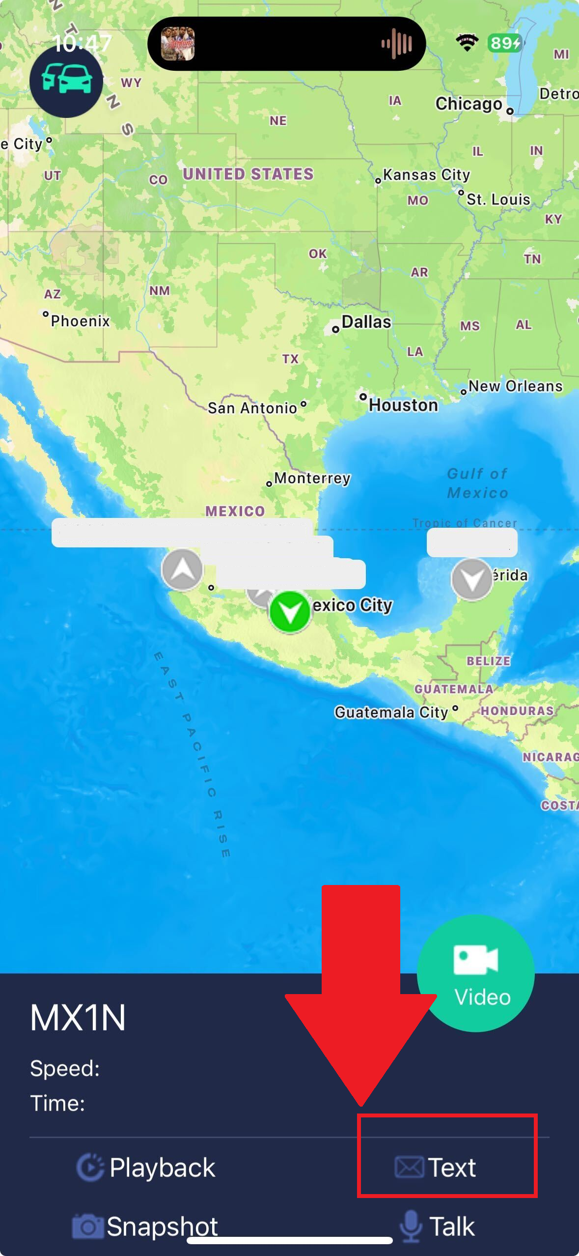 Se nos abrirá un menú de acción para el vehiculo sellecionado y tendremos que dar click en la opción de Text